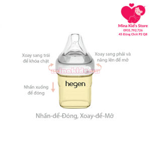 - Bình sữa Hegen được thiết kế độc đáo, chỉ cần ấn để đóng và xoay nhẹ để mở, tránh gây sự bất tiện cho bố mẹ khi đang một tay bế bé và một tay mở nắp bình sữa.