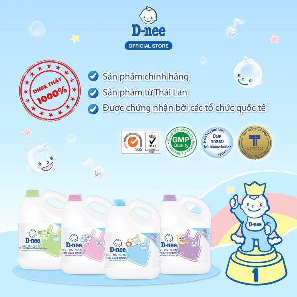 | Nước giặt quần áo D-nee Honey Star (Hồng) – Làm sạch hiệu quả và dễ dàng loại bỏ các vết bẩn cứng đầu – Hương phấn thơm dịu nhẹ và lưu hương bền lâu – Độ pH ở ngưỡng tự nhiên, an toàn và dịu nhẹ cho làn da nhạy cảm của trẻ nhỏ – Dễ dàng giặt sạch và bảo vệ sợi vải – Không chứa các chất độc hại như Gluten, chất tạo màu, Enzymes, Cồn, Paraben, Chất huỳnh quang, Formaldehyde – Được kiểm chứng không gây dị ứng cho làn da của trẻ |